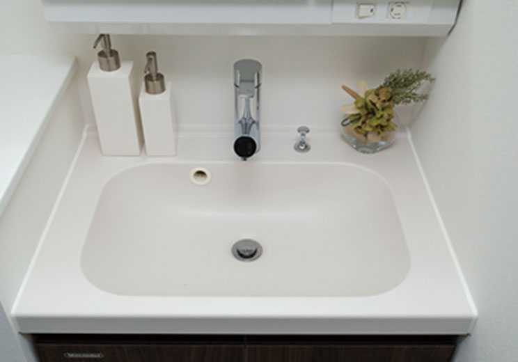 デザイン性と清掃性に優れた人造大理石のカウンター一体型の洗面ボウルを採用しています。
