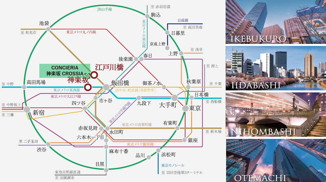 距離江戶川橋站步行3分鐘、神樂坂站步行9分鐘,並且可輕鬆步行至飯田橋站的新建分售公寓,即將誕生。坐落於山手線內側這一有限的都心地段,卻能享有寧靜舒適的生活環境,堪稱難得一見。東京Metro有樂町線、東西線、南北線、大江戶線以及JR中央・總武線皆可自由利用,無論商務或私人生活,都能迅速直達主要市中心區域。既享有都心的便利,又兼具舒適與靜謐,真正實現了「為生活而存在的都心」之環境。