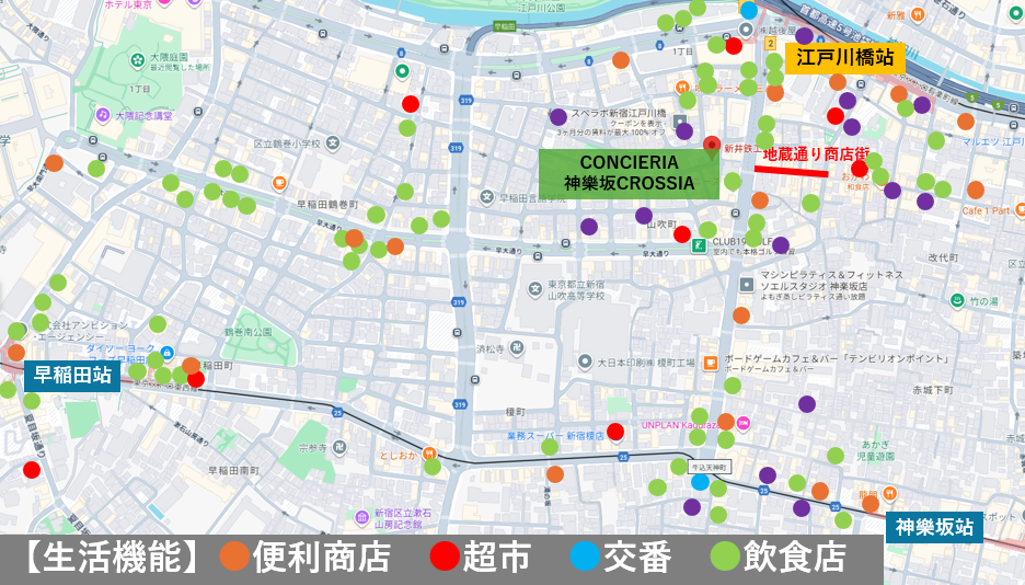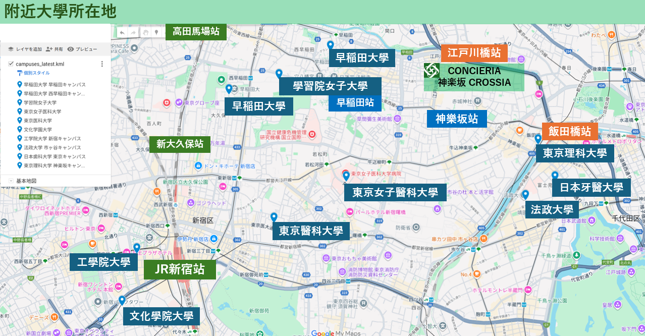 以早稻田大學為首,沿線聚集了眾多大學校園,日常有大量學生在此勤奮學習。這裡不僅是適合求學的環境,同時也可預期來自大學相關人士的穩定租賃需求。