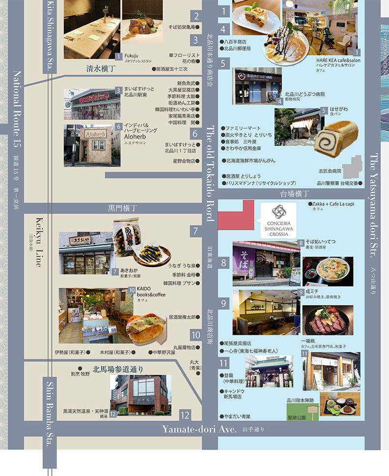 江戸時代に整備された五街道の一つ。日本橋を起点とする東海道には53の宿場があり、その最初の宿易としてにぎわった品川宿。宿泊施設や問屋場、見送り等で多くの人やものが往き交い集まる街道の拠点でした。現在でも旧東海道は江戸時代当時の道幅が残されながら、石畳舗装や電線の地中化、看板やのれんなどの景観が整備されています。また旧東海道沿いには歴史、趣ある商店街が3つ「北品川本通り商店会」「北品川商店街」「北馬場参道通り商店街」へと繋がっており、周辺住民だけでなく、歴史愛好家等多くの人に愛されています。
