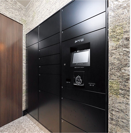 テブラ携帯機をかざし、簡単操作をするだけで宅配物の受け取り操作が可能な宅配ロッカーを採用。配達の際、業者と直接顔を合わせることなく荷物の受け渡しができるため防犯にも有効です。