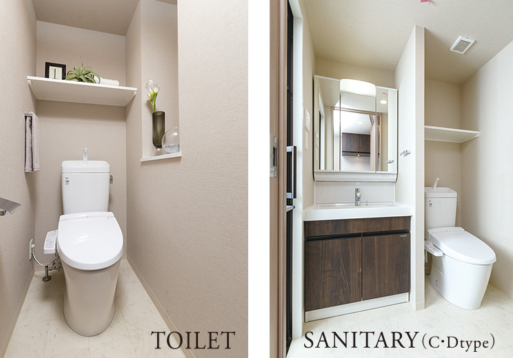 洗浄・暖房便座など快適機能を搭載したシャワートイレを採用。座面が前面にスライドするお掃除のしやすい便座です。