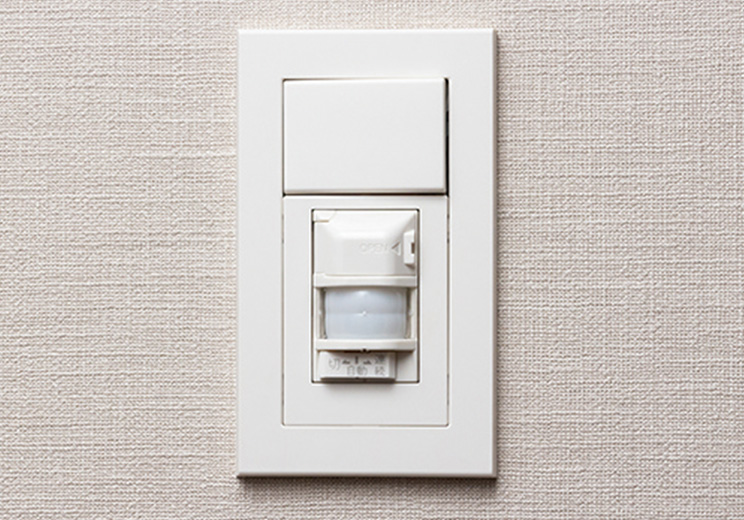 帰宅時に自動で玄関の明かりがつく、人感センサー対応ダウンライトを採用。夜間、暗い所でスイッチを 探す手間が省 けます。