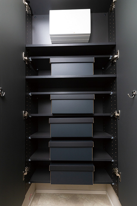 玄関には、トール型下足入れを設置。季節により使用頻度がかたよる靴もしっかり整理できます。