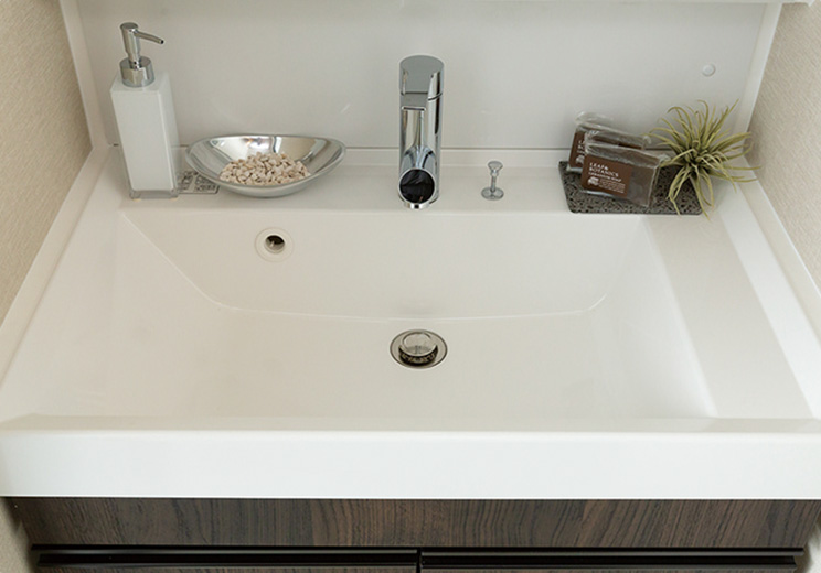 デザイン性と清掃性に優れた人造大理石のカウンター一体型の洗面ボウルを採用しています。