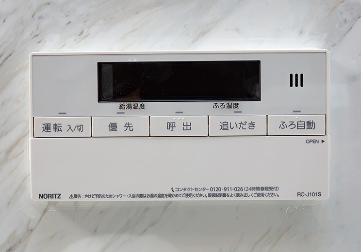 バスルームは追い焚き機能のついたオートバスを採用。また、ガス給湯器にはエネルック機能が付いており、キッチン給湯リモコンでガス・お湯の使用量やCO2排出量が確認でき、省エネ意識が高まります。