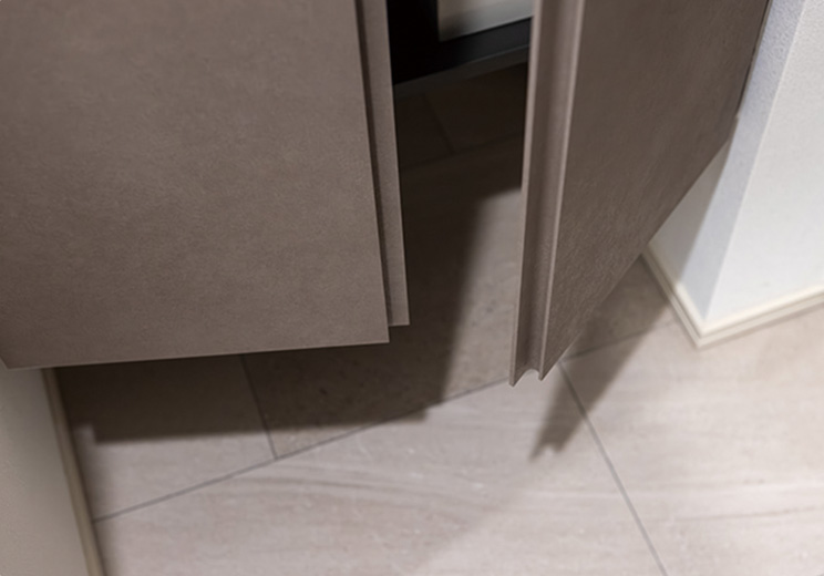 玄関には、トール型の下足入を設置。季節により使用頻度がかたよる靴もしっかり整理できます。