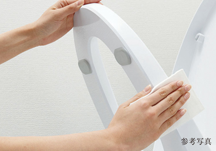 便座のつぎ目がなく、便座裏も防汚素材で、汚れてもサッとひと拭き。
