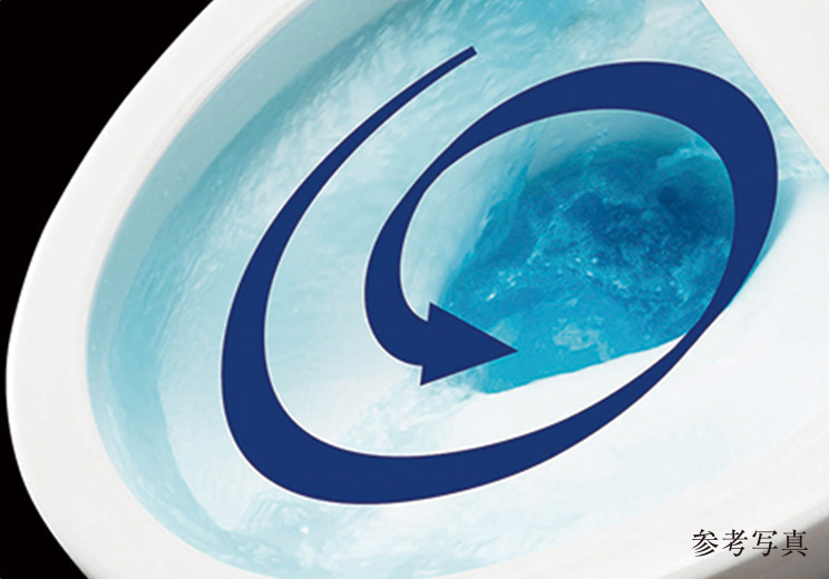 強力な水流が便器鉢内のすみずみまで回り、少ない水でもしっかり汚れを洗い流します。