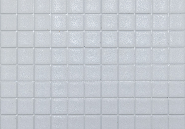 微細な凹凸を施したスクエアパターンの床は、濡れていても滑りにくいので安心。また、水が残りにくく翌朝にはしっかりと乾きます。