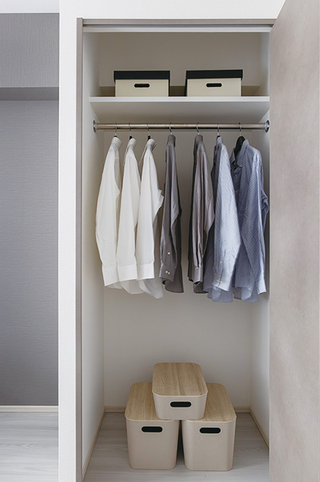 枕棚とハンガーパイプを備えたクローゼット。コートやジャケットなど効率よく収納できます。