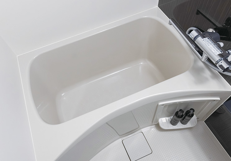 少ない水量でもゆったり感じられる形を追求した浴槽です。快適さを叶えながら、上手に節水できるエコデザインです。