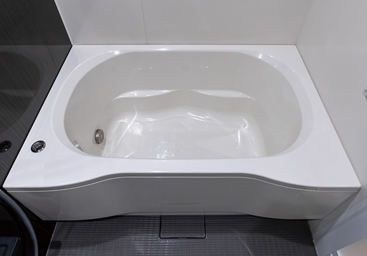 浴槽内のアームレストが身体の安定を保ちます。また、低めのまたぎで出入りしやすい設計となっています。