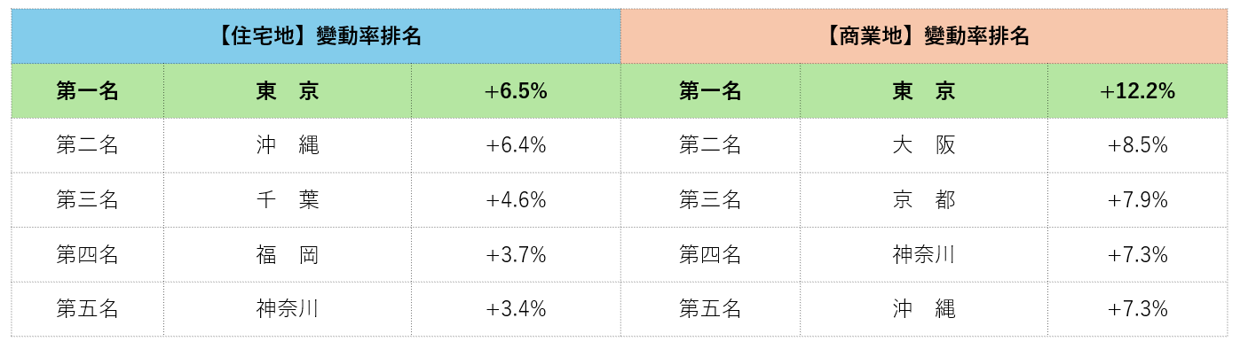 此外,在包含入境旅遊在內的觀光需求復甦帶動下,度假地的地價亦出現上升。例如長野縣白馬與北海道富良野等地,皆出現超過30%的上漲。