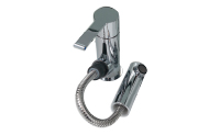 片手で温度と水量を調整できるシングルレバー混合水栓を採用しています。