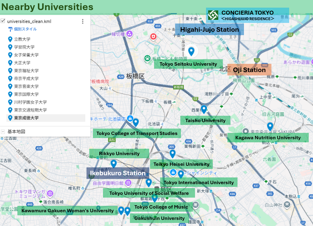 This CONCIERIA is located near Teikyo University, Tokyo Kasei University, and Toyo University, and Ikebukuro, located nearby, is also home to many universities such as Rikkyo University, Gakushuin University, and Tokyo University of Social Welfare. As a result, the area is expected to maintain stable rental demand from students, as well as professionals working in the education sector.